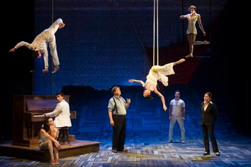 Mais, des roses de Giguère, revenons à nos coquelicots… Lorraine Pintal, directrice artistique du TNM, nous propose, dans le domaine du spectacle vivant, une forme d’œuvre d’art totale, un « Gesamtkunstwerk » wagnérien, où se mêlent cirque, théâtre et musique. Dans un tel contexte, la difficulté consiste bien sûr à créer une unité, comme l’opéra sait assez souvent le faire en utilisant la musique, le chant, les décors et la scénographie comme support d’un contenu dramatique, à faire converger ces différentes disciplines en leur permettant de s’enrichir mutuellement sans faire perdre aux spectateurs le fil du propos. On peut sans hésiter dire que le collectif de cirque Les 7 doigts de la main, Sébastien Soldevilla, Shana Carroll, cocréateurs de la troupe, et Michel Vézina, cometteurs en scène et coauteurs du spectacle, Nans Bortuzzo, auteur des arrangements musicaux et compositeur de la musique originale, Rémy Girard et Pascale Montpetit relèvent haut la main le défi.